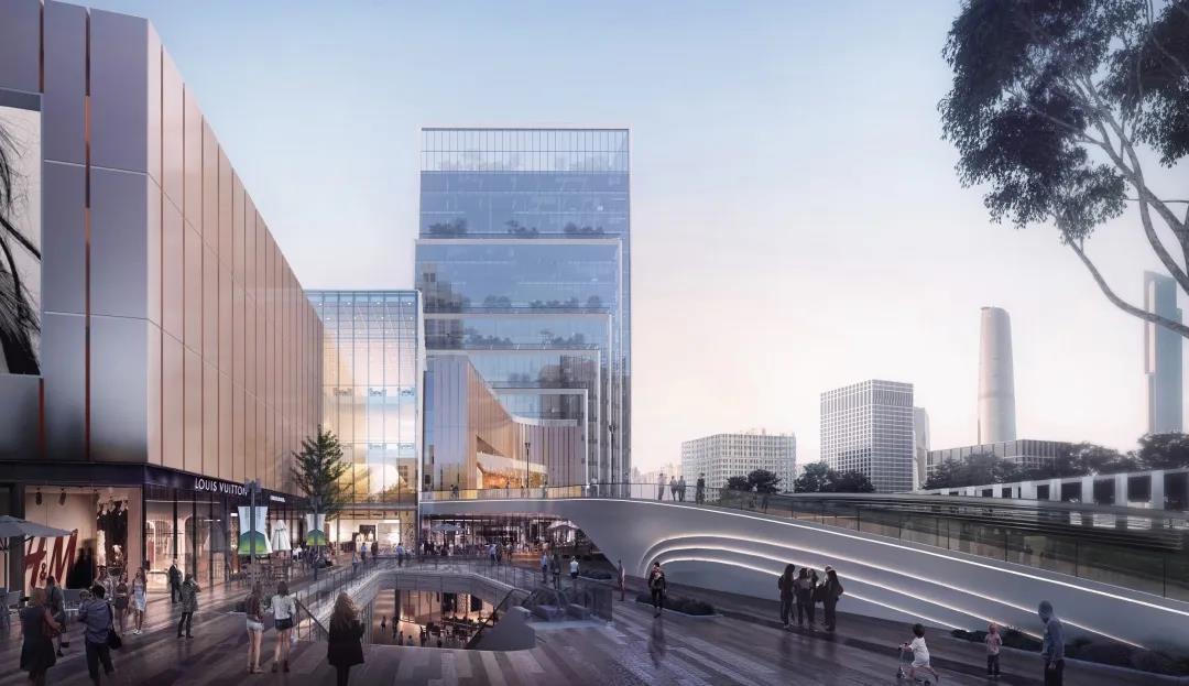 上海新金环广场设计竞赛方案将城市以及文化与生态融合,打造具有山水诗意的购物休闲空间,同时保留文化地标,并融合智慧办公与智创发展,标志着未来建筑所需要的“绿色智慧”。