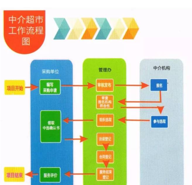 中介超市是各类有关中介服务网上交易的综合性信息化服务和信用管理平台,为项目业主购买中介服务、中介服务机构承接中介服务项目行业主管部门对相关单位和人员实施监管提供服务。